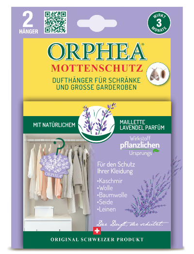Die Orphea Mottenschutz Hänger bestehen aus reiner Zellulose, die in unserer Schweizer Fabrik hergestellt werden. Ihr raffiniertes Bouquet mit Duft nach Maillette-Lavendel ist das Ergebnis geschickter Forschung unter verschiedenen Heilpflanzen, um die wirksamste Zusammensetzung von edlen Lavendeln zu finden und einen frischen Duft zu erhalten, der die kostbarsten Kleidungsstücke für lange Zeit auf angenehme Weise umgibt und schützt (Wolle, Leinen, Seide, Baumwolle usw.). Ideal für den Einsatz in Schubladen, Schränken und Kleiderschränken.