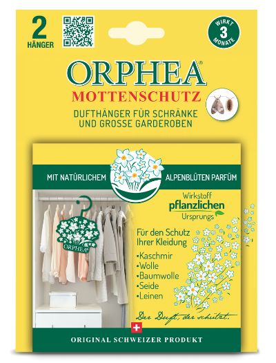 Die Orphea®Mottenschutz Dufthänger bestehen aus reiner Zellulose, die in unserer Schweizer Fabrik hergestellt werden. Ihr raffiniertes Bouquet ist das Ergebnis einer Zusammensetzung verschiedener Pflanzenextrakte von Blumen und Pflanzen, die geschickt dosiert und gemischt werden um einen frischen Duft zu finden, der die kostbarsten Kleidungsstücke für lange Zeit auf angenehme Weise umgibt und schützt (Wolle, Leinen, Seide, Baumwolle usw.). Ideal für den Einsatz in Schränken oder begehbaren Kleiderschränken.