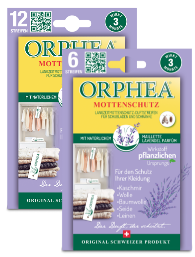 Die Orphea® Mottenschutz Streifen bestehen aus reiner Zellulose, die in unserer Schweizer Fabrik hergestellt werden. Ihr raffiniertes Bouquet mit Maillette Lavendel Parfüm, ist das Ergebnis geschickter Forschung verschiedener Heilpflanzen, um die wirksamste Zusammensetzung edelstem Lavendels zu finden und einen frischen Duft zu erhalten, der Ihre kostbarsten Kleidungsstücke für lange Zeit auf angenehme Weise umgibt und schützt (Wolle, Leinen, Seide, Baumwolle usw.). Ideal für den Einsatz in Schubladen, Schränken und Wäschekästen.