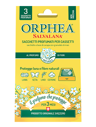 The Orphea® Salvalana® diffusers are made of pure cellulose manifactured by the Swiss factory in Canton Ticino. Their sophisticated bouquet is the result of a composition made up of numerous ingredients extracted from plants and flowers, cleverly dosed and blended to obtain a pleasant, fresh scent that envelopes and protects your most precious clothes (wool, linen, silk, cotton, etc.) for a long time. Ideal for use in wardrobes and walk-in closet.