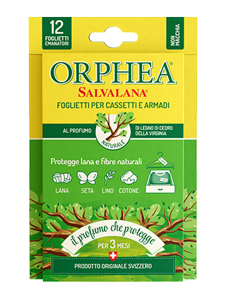 The Orphea® Salvalana® diffusers are made of pure cellulose manifactured by the Swiss factory in Canton Ticino. Their sophisticated bouquet with a scent of Virginia Cedarwood is the result of in-depth research into the various wood essences to find the most effective and pleasant composition to obtain a pleasant, fresh scent that envelopes and protects your most precious clothes (wool, linen, silk, cotton, etc.) for a long time. Ideal for use in wardrobes and walk-in closet.
