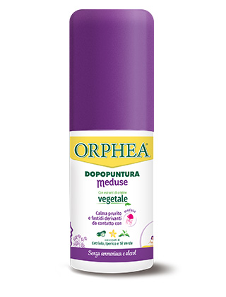 Orphea® Dopopuntura Meduse dona sollievo alla pelle irritata dopo il contatto con le meduse, alleviando la sensazione di prurito e l’arrossamento. L’erogatore spray permette di non toccare la cute con le mani. La formulazione con estratti di acqua di mare ed estratti di origine vegetale svolge un’efficace azione astringente e lenitiva, disarrossante e decongestionante che calma i fastidi derivanti da contatto con meduse, idratando la pelle. Senza ammoniaca, né alcol, è adatta alla cute di tutta la famiglia e ideale per le pelli sensibili. Formula dermatologicamente testata con estratti di: