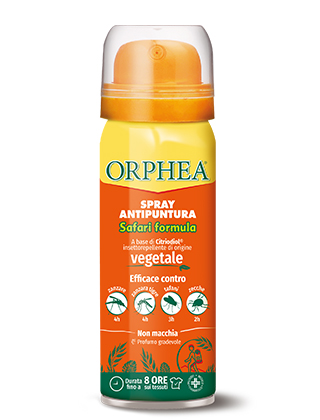 Orphea® Protezione Persona Spray Insettorepellente protegge dalle punture di zanzare, tafani, pappataci e zecche. La sua formulazione è a base di Citriodiol®, sostanza ad attività insettorepellente di origine vegetale ottenuta dall’Eucalyptus citriodiora e la sua efficacia è testata anche contro la zanzara tigre (Aedes albopictus) e i tafani, con tempi di protezione di 4 e 3 ore rispettivamente e le zecche con un tempo di protezione di oltre 2 ore. Orphea® Protezione Persona Spray Insettorepellente può essere applicato direttamente sugli abiti per una protezione prolungata di circa 8 ore. Non bagna, non macchia i tessuti e rilascia un gradevole profumo.